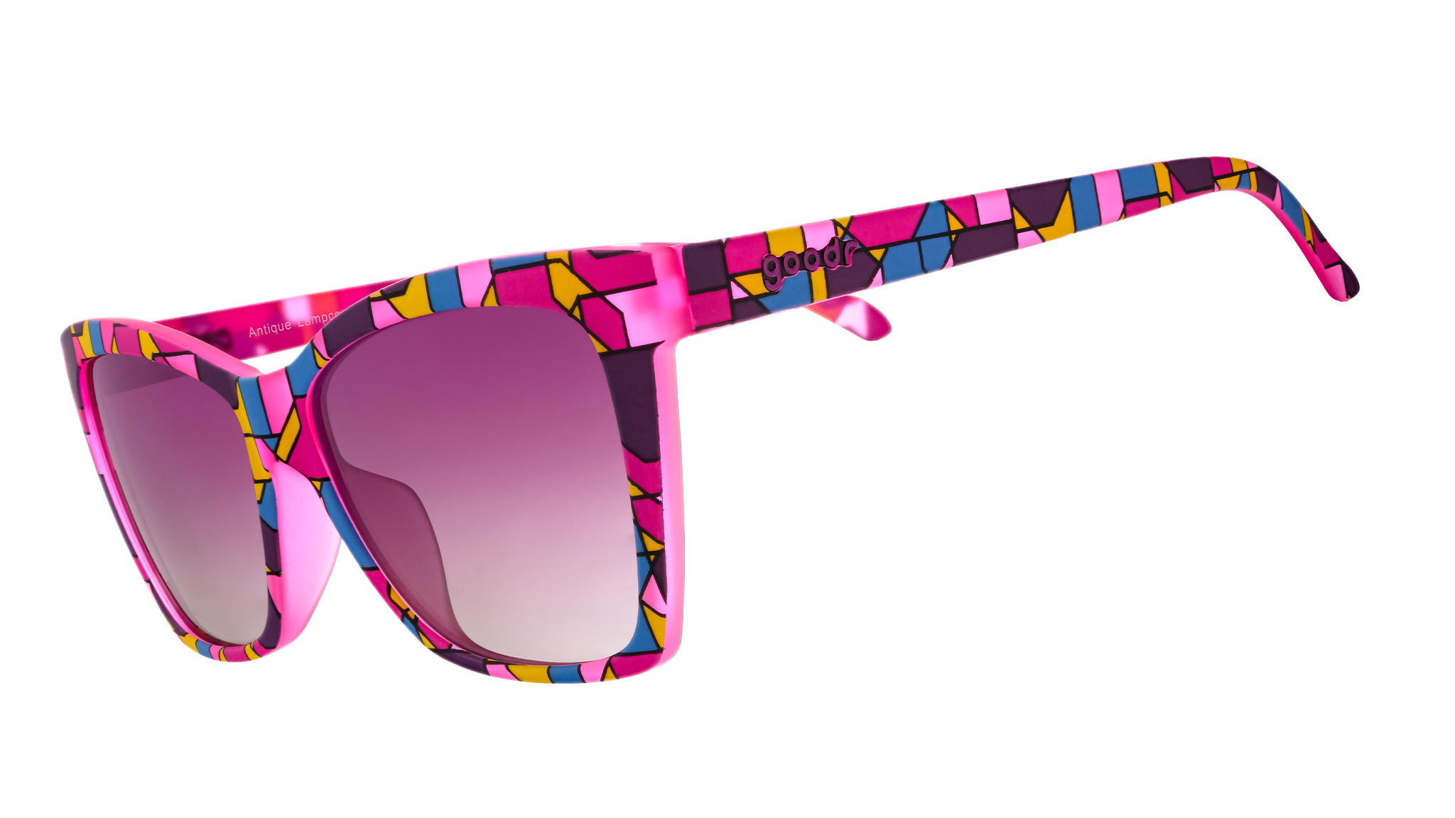 When you show up to a lampcore convention dressed as a Tiffany lamp & someone asks if they can rub your cabochons, you might be an Antique Lampcore Influencer. These limited, stained glass-inspired Pop Gs w/ purple gradient lenses know the feeling.